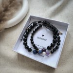 Zestaw dwóch bransoletek dla par to piękny sposób na wyrażenie wzajemnej więzi i bliskości. Kamienie zostały dobrane tak, by wzmocnić miłość i szacunek, a jednocześnie podkreślić pierwiastek każdej z płci. W damskiej bransoletce zostały wykorzystane fasetowane kamienie, co nadaje jej eleganckiego wyglądu. Męska złożona jest z gładkich kul, dzięki czemu stanowi idealny dodatek zarówno do codziennych jak i wyjściowych stylizacji.